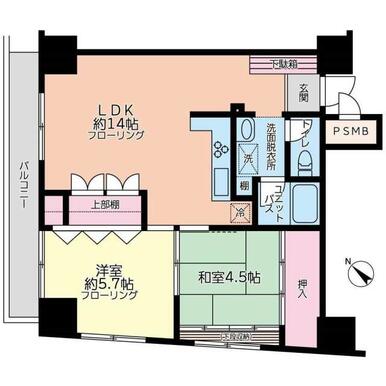 | 間取り(内訳) | 2LDK(和4.5洋5.7LDK14) | ||